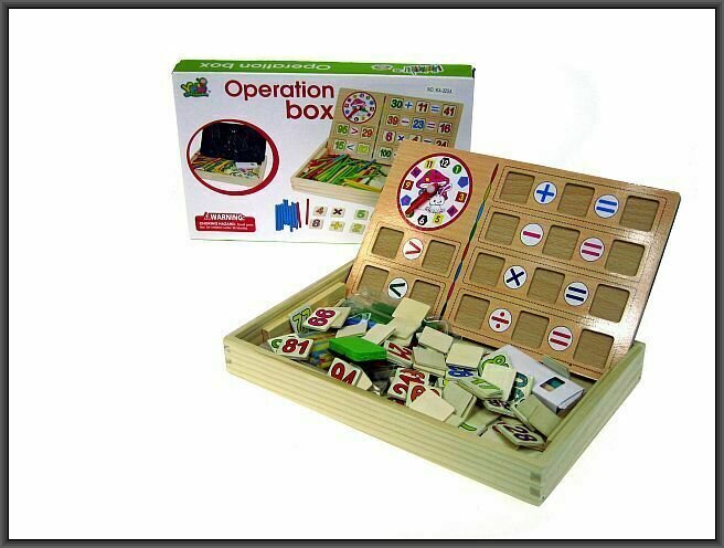 Zestaw do ćwiczenia działań matematycznych od HIPO. W drewnianym boxie znajdziemy: kolorowe, drewniane pałeczki, które mogą posłużyć do obliczeń, drewniane płytki z liczbami, kredy, dwustronną tablicę (1 strona - tablica kredowa, 2 strona - tablica ze znakami działań i otworami na płytki z liczbami). Zestaw zawiera również zegar ze wskazówką minutową i godzinową. Dzięki temu, że mamy dostępne pałeczki, możemy ułatwić dziecku wykonywanie obliczeń, zanim nauczy się to robić w pamięci.Wymiary opakowania: 29x4x19cmWiek: 3+