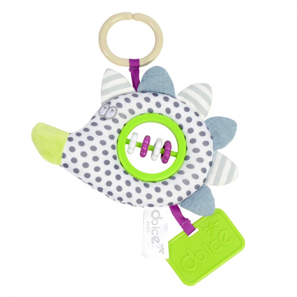 Ježek je vyroben z různých druhů textilií, které rozvíjí hmatové schopnosti. Různé aktivity zvířátka nabízí pro malé zvídavé děti skvělou zábavu a podporují správný rozvoj jemné a hrubé motoriky. Pomocí praktického kroužku je možné zvířátko zavěsit téměř kdekoliv.