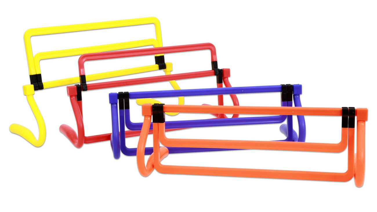 Set barevných sportovních překážek je skvělou tréninkovou pomůckou pro malé i velké, zlepšuje pohyblivost, rychlost a koordinaci těla. Překážky lze nastavit do 4 různých výšek (15, 23, 30 a 37 cm), lze s nimi vytvořit například běžeckou dráhu s různými stupněmi obtížnosti překážek. Set je ideální do hodin tělesné výchovy, je vhodný do mateřských škol i volnočasových organizací.