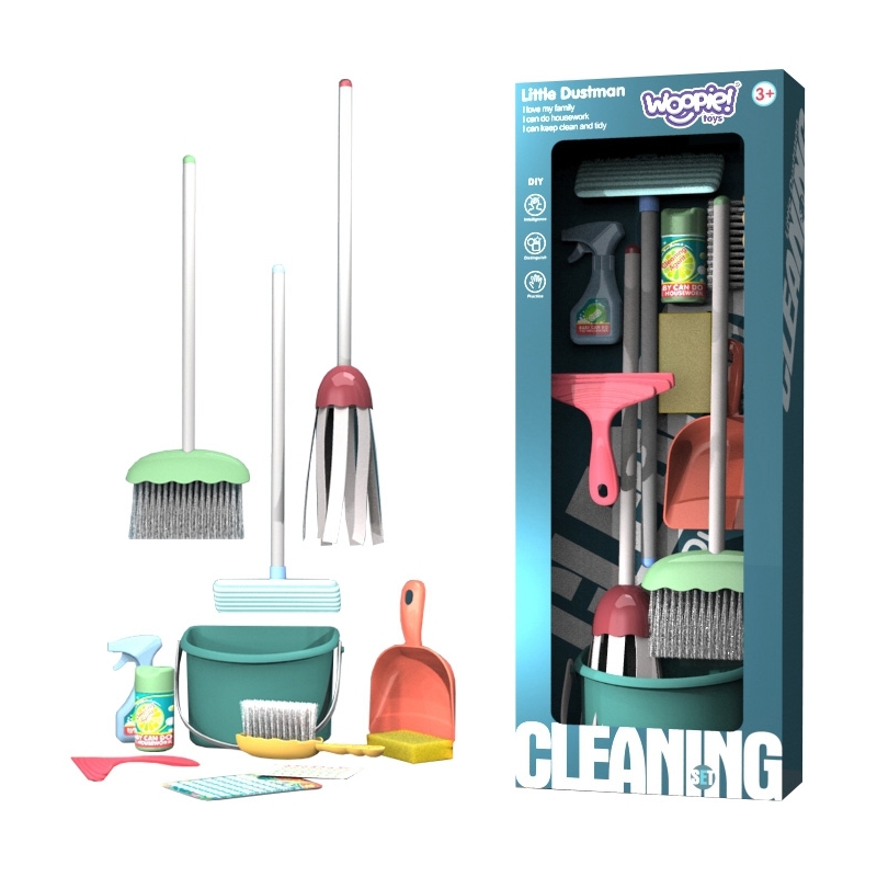 Zestaw do sprzątania od marki WOOPIE to marzenie każdego małego pomocnika! Dzieci uwielbiają naśladować swoich rodziców. Zabawka uczy odpowiedzialności i rozwija świadomość obowiązków w życiu codziennym oraz zdolności manualne. Ten wysoce profesjonalny zestaw jest odwzorowaniem prawdziwych sprzętów. Elementy są idealnie dopasowane do rączek dzieci.