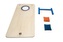 Hra obsahuje: 2 dřevěné hrací desky (cca 60 × 30 × 0,9 cm), 8 házecích sáčků (4 modré + 4 oranžové), cca 8 × 8 cm.