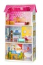 Celý domeček je vyroben z vysoce kvalitního dřeva, které neobsahuje žádné ostré a nebezpečné hrany. V první úrovni je koupelna a kuchyň se dvěma židlemi a stolem. Celé druhé patro je prostorný obývací pokoj pro kreativní využití. V horním patře jsou ložnice s postelí.
