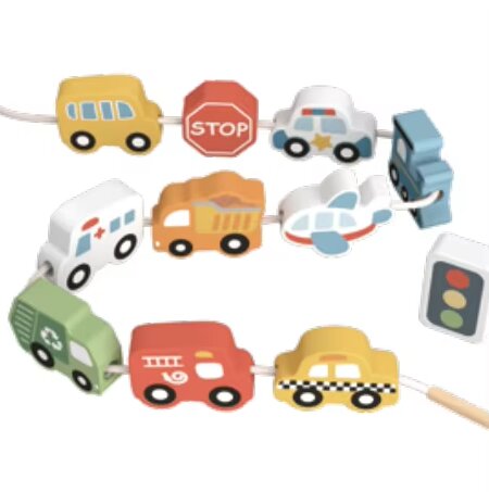 Navliekanie DopravaDrevené autá a dopravné značky na navliekanie v jemných farbách Vstúpte do sveta príjemných farieb a spoznávania dopravy! Táto sada drevených áut a dopravných značiek na navliekanie ponúka 13 dielikov. Deti môžu navliekať, triediť tvary, pomenúvať autá a zároveň trénovať jemnú motoriku a koncentráciu.Každý dielik je veľký, ľahko uchopiteľný a navrhnutý tak, aby rodičia mohli pokojne sledovať hru bez stresu - je vhodný pre deti už od približne 18 mesiacov.Čím si táto hra deti hneď získa?13 veľkých drevených dielikov áut a značiek - ideálne na navliekanie aj hraniebezpečná drevená ihla so šnúrkou, ktorá zjednodušuje navliekanie a podporuje sústredenietrénuje jemnú motoriku, koordináciu ruka-oko, rozpoznávanie farieb a pomenovávanie zvieratiekvyrobené z kvalitného dreva a bezpečne dotiahnuté netoxickými farbami vhodnými pre najmenšie detikompaktné balenie - ideálna hračka ako darček alebo na cestovanie