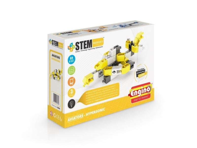 Zestawy klocków STEM Heroes, seria Awiacja, umożliwiające zbudowanie 1 modelu z każdego zestawu, ulotka informacyjna dotycząca tematyki danego zestawu, bezpłatna aplikacja do ściągnięcia z Internetu. Zestawy łączą się, po zebraniu trzech zestawów można zbudować model combo\'.