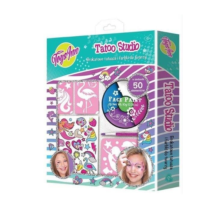 Tato sada obsahuje vše potřebné pro snadné a bezpečné malování na obličej a vytváření dočasných tetování. Díky pěti sytým barvám (bílá, modrá, růžová, fialová a zelená) můžete společně vytvářet různé motivy a fantazijní vzory. V balení najdete také tři šablony, které usnadní práci a pomohou vytvořit přesné a krásné tvary, a 45 třpytivých tetování pro ještě větší zábavu.