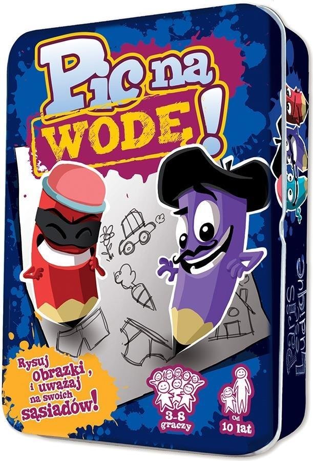 Dali, Van Gogh, Monet, Rembrandt, Kossak... Każdy niesamowity, z własnym stylem, patrzący na rzeczywistość inaczej, a wszyscy sławni. Nie inaczej będzie z Tobą! Postaw na unikalność, niecodzienne spojrzenie, inną perspektywę i myślenie w niestandardowy sposób! Sława czeka także na Ciebie! Chyba że nie jesteś jednym z tych, którzy przecierają szlaki i stawiają czoła krytyce, forsując swoje zdanie. Może wtedy mainstream" będzie dla Ciebie lepszym rozwiązaniem? W końcu przynosi to niezłe pieniądze. W grze Pic na wodę!" stajesz się Artystą albo Fałszerzem. Na początku gry wszyscy otrzymują tajne karty z rolami. Większość ról to Artyści, ale pośród nich ukryje się jeden lub dwóch naśladowców. Następnie odsłaniany jest temat wystawy i wszyscy starają się jak najszybciej narysować trzy proste obrazki, które łączą się z wylosowanym tematem. Przykładowo temat Ostre przedmioty" pozwala na narysowanie, noża, śrubki, rozbitej butelki, szpilek itd. Następnie gracze porównują swoje obrazki. Artyści dostają po jednym punkcie za każdy własny obrazek, którego nikt inny nie narysował. Fałszerze dostają jeden punkt za każdy obrazek narysowany przez przynajmniej jednego Artystę. Dlaczego będziesz się przy tej grze świetnie bawić? Gra nie wymaga umiejętności rysowania. Szybkie, schematyczne obrazki są nie tylko całkowicie wystarczające, ale też dostarczają dodatkowej zabawy przy porównywaniu ich i próbowaniu zrozumienia gryzmołów współgraczy. Role Artysty i Fałszerza wymagają zupełnie innego podejścia do gry. Raz staramy się myśleć możliwie oryginalnie, a w drugim wypadku, podobnie jak to jest w grze Dixit, staramy się domyśleć, o czym mogli pomyśleć współgracze. Gra wydana jest w świetnym, kompaktowym pudełku, łatwym do transportu. Różnorodność tematów wystaw i ich ilość zapewni niekończące się godziny przedniej zabawy. Będziecie grać, grać i grać, aż słońce zacznie wschodzić. I wtedy uznacie, że bez sensu iść spać i będziecie grać dalej. ;)