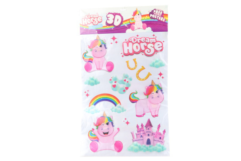 Líbí se ti jednorožci? Super, protože díky 3D samolepkách na zeď je můžeš mít pořád u sebe v pokojíčku! 6 samolepek s 3D efektem a 8 obyčejných udělá z tvého pokojíku království! Nalep si vše podle své fantazie! Rozměry balení: 38 x 63 cm Vhodné od 14 let