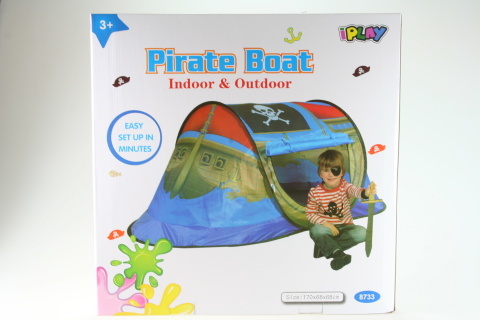 Stan - pirátská loď o rozměrech cca 170 X 68 X 68 cm pro malé piráty.Stan můžete použít doma v pokojíku ale také v létě venku na zahradě. Děti si při hraní a schovávání užijí spoustu zábavy.Věk 3+