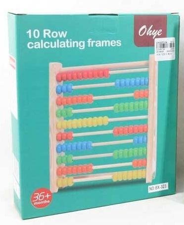 Drewniane liczydełko. Produkt nie potrzebuje baterii. Zabawka przeznaczona dla dzieci powyżej 36 miesięcy.