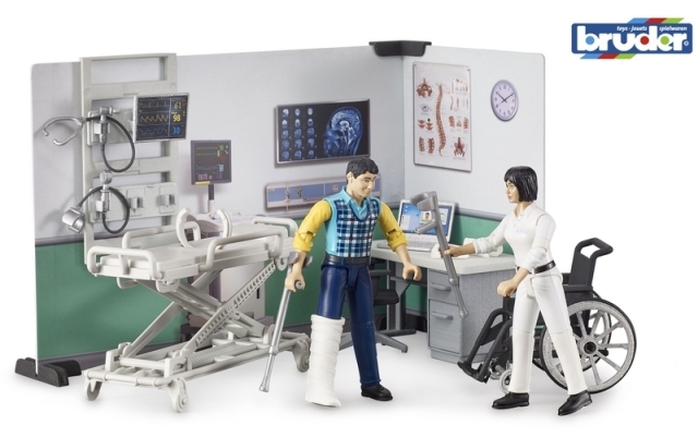 Sem tam se i Bruder světě přihodí nějaká ta nehoda nebo zranění lyžaře na sjezdovce a je potřeba odborné lékařské ošetření. Pro tento případ najdete vše potřebné v sadě 62711 Ordinace s figurkami. Figurky mají pohyblivé končetiny. V sadě najdete: kulisy ordinace, figurku lékařky, figurku pacienta, invalidní vozík, lékařské lůžko a další nezbytné vybavení ordinace. Pořiďte si k tomuto setu ještě sanitku Bruder 2536 a užijte si ještě více zábavy a zachraňte ještě více Bruder postaviček. Německá značka Bruder vyrábí realistické modely dopravních a stavebních prostředků nejvyšší kvality s tradicí rodinné firmy již 80 let. Hračky Bruder jsou navrhovány dle reálných strojů do nejmenších detailů s funkčními mechanickými vlastnostmi. Hračky Bruder a jejich příslušenství jsou mezi sebou kompatibilní a variabilní. Každé dítě je nadšené z modelů aut a strojů, ale značka Bruder dává něco víc - funkčnost, reálnost, detaily a kvalitu použitého materiálu. Značka Bruder rozčleňuje hračky do třech sérií - Bruder - RoundMax, Profi série a Mini série.