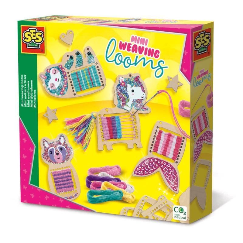 S těmito čtyřmi dřevěnými mini tkalcovskými stavy a šesti barevnými bavlnkami můžete uplést malá roztomilá zvířátka. Nakonec můžete zvířátka odzdobit třpytivými samolepkami. Jaké zvířátko si vyrobíte první? Sada obsahuje: 4 mini tkalcovské stavy, třpytivé samolepky, 6 barevných bavlnek, 1 vyšívací jehla, návod. Rozměr balení: 20 x 20 x 4 cm. Věk: 6+