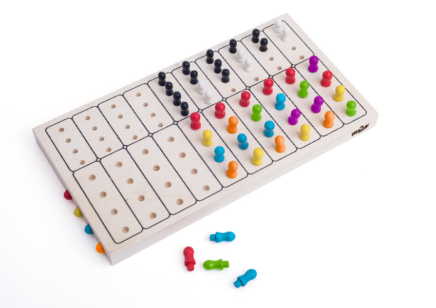- Herní plán a sady barevných dřevěných kolíčků pro tvorbu kombinací.