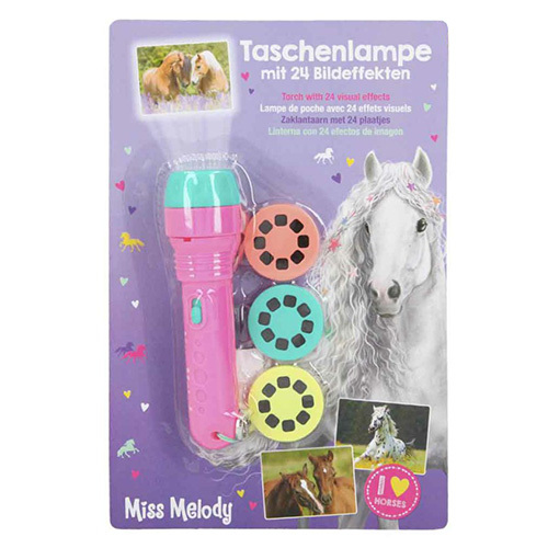 Úžasný dárek pro všechny milovníky koní značky Miss Melody. Růžová svítilna do které vsuneš postupně tři kotoučky s osmi okénky. Otáčíš je a prosvěcuješ v zatemnělé místnosti, čímž vytvoříš na zdi nádherné obrázky koní.Rozměr: 11,8 x 3 cm. Napájení 3 ks baterie 1,5V LR44 (jsou součástí balení).