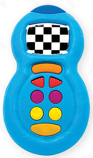 Ovladač po zmáčknutí tlačítek vydává legrační zvuky. Vysoce kontrastní barvy rozvíjí vizuální vnímání. Měnící se obrázky přitahují pozornost. Bez povrchových laků, bezpečné do pusy. Vhodné od 3 měsíců.