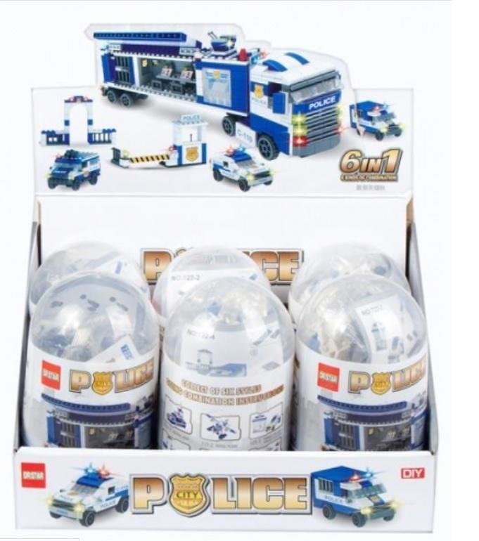 Klocki konstrukcyjne zawierające aż 6 modeli pojazdów policyjnych do złożenia z jednej kapsuły. Cena za pojedynczą sztukę.
