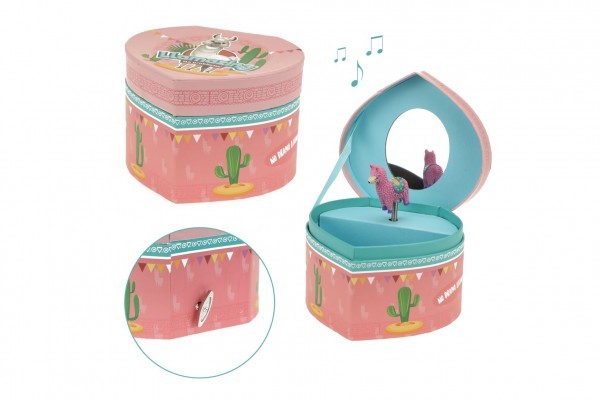 Hrací skříňka šperkovnice Lama natahovací karton srdce 12x8,5x11cm ve fólii
