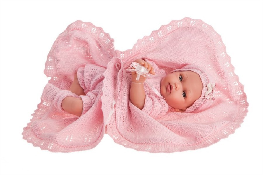 Ručně vyrobená realistická španělská panenka - miminko, se speciální pohybovou funkcí. Díky vnitřní opoře kostry těla, může dělat neobvyklé pohyby končetin, jako překřížit nožičky vleže, dát k sobě dlaně nebo zaujmat různé miminkovské polohy. Miminko má měkké látkové tělo, hlava a končetiny jsou vyrobené z kvalitního měkčeného vinylu. Oblečení panenky bylo vyrobeno z organické bavlny, která zaručuje výrobu z ručně sbírané, ekologicky bez chemického ošetření pěstované bavlny. Firma Antonio Juan klade velký d