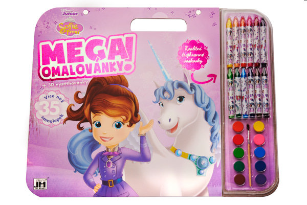 Set obsahuje 30 obrázků k vybarvení, 5 listů k malování, 12 trojhranných voskovek s potiskem, 10 vodových barev se štětečkem, postavičky k vystřihnutí a více než 35 samolepek. číst celé