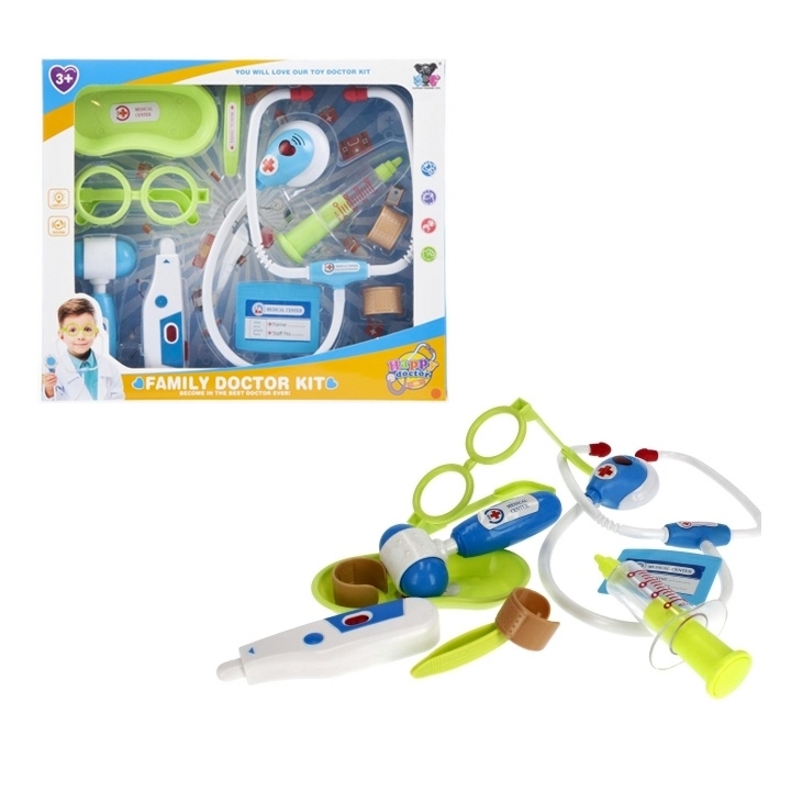 Lékařská souprava se všemi potřebnými zdravotnickými prostředky, rozvíjí představivost dítěte a učí se starat o nemocné. Díky této soupravě budou všichni pacienti vyléčení! Teploměr a stetoskop svítí a stetoskop