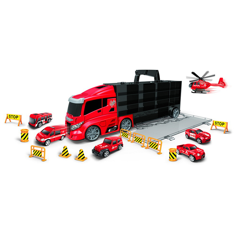 Kamion hasiči přenosný s auty a vymršťovací dráhou