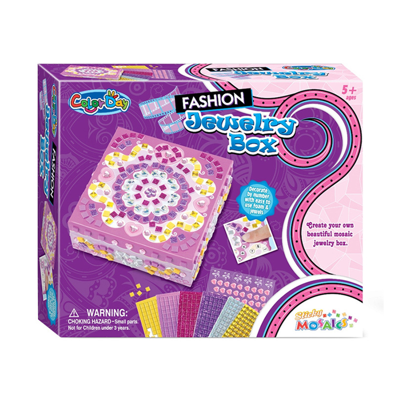 Kreativní šperkovnice, kterou si můžete sami vyzdobit pomocí přiložených třpytivých dílků. Jednotlivé dílky se nalepí na políčka s vyobrazenými čísly. Ideální pro rozvoj kreativního myšlení.