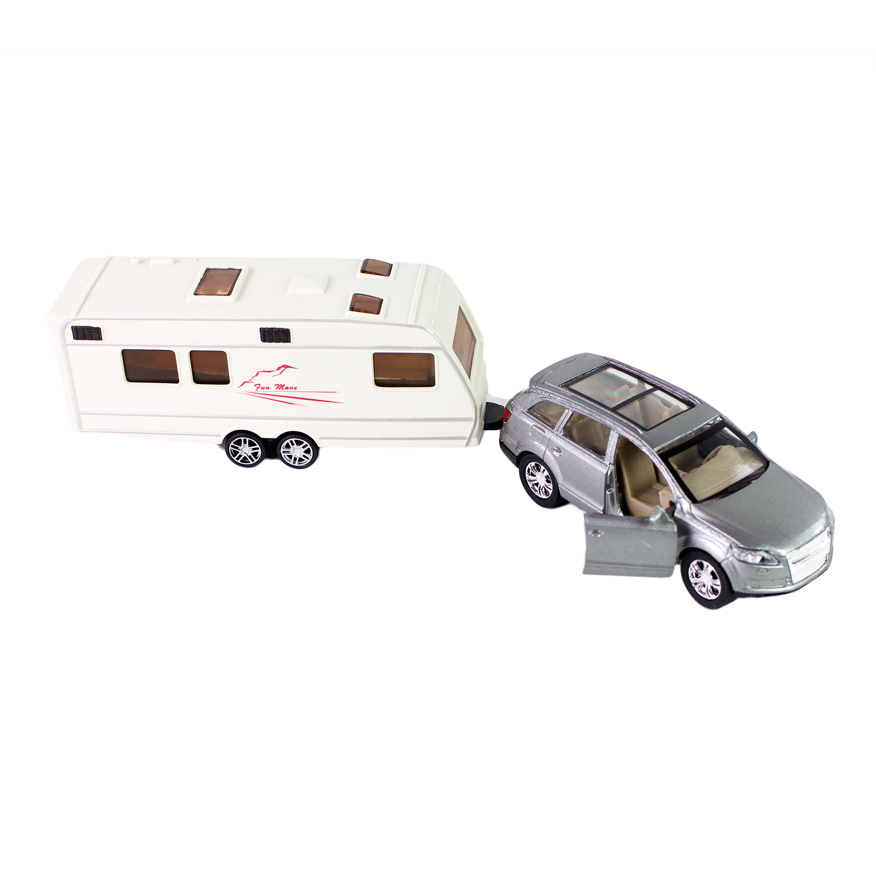 Úžasné kovové auto na zpětný setrvačník, má otevírací dveře a jeho délka je cca 12 cm. K tomuto autíčku je připojen přívěs, který je z plastu a jezdí na volný chod, délka přívěsu je cca 15 cm. Tento model je v měřítku 1:48.