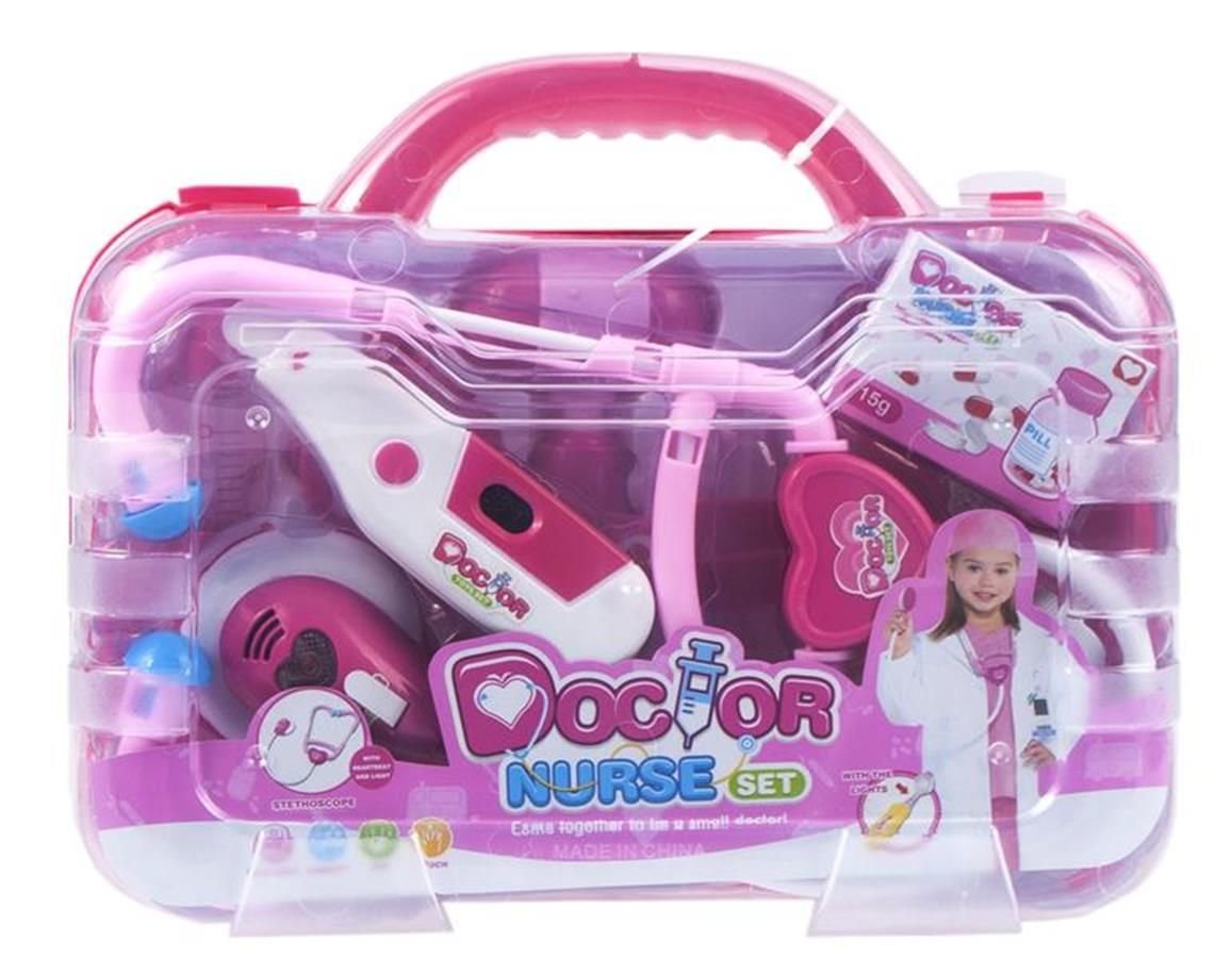 MEGA CREATIVE představuje lékařskou soupravu se všemi potřebnými zdravotnickými prostředky. S touto sadou budou všichni pacienti vyléčení! Růžová hračka. Vše je zabaleno v praktickém kufru. Teploměr a stetoskop svítí a stetoskop má zvuk srdce.