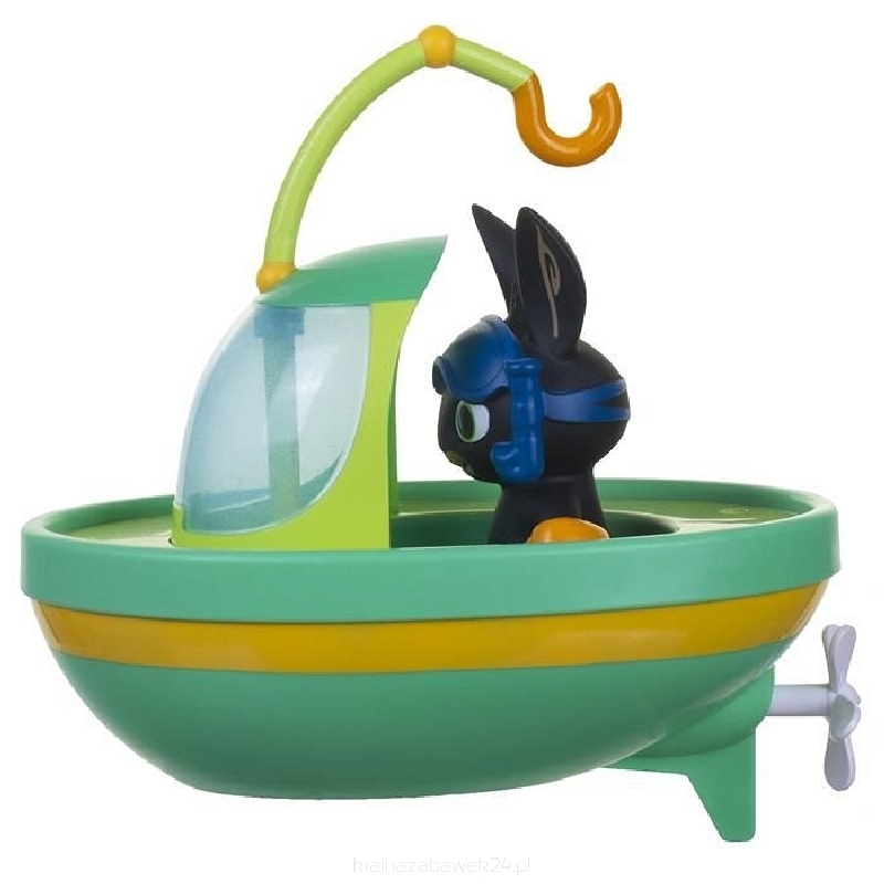 Bing na palubě své lodičky. Je to natahovací hračka do koupele, které stříká vodu. Vyrobena z pevného plastu, nepotřebuje žádné baterie!