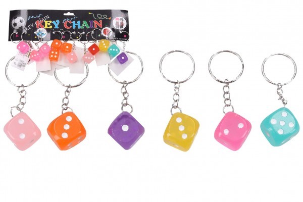 Přívěšek na klíče/Klíčenka hrací kostka plast/kov 7cm 6 barev