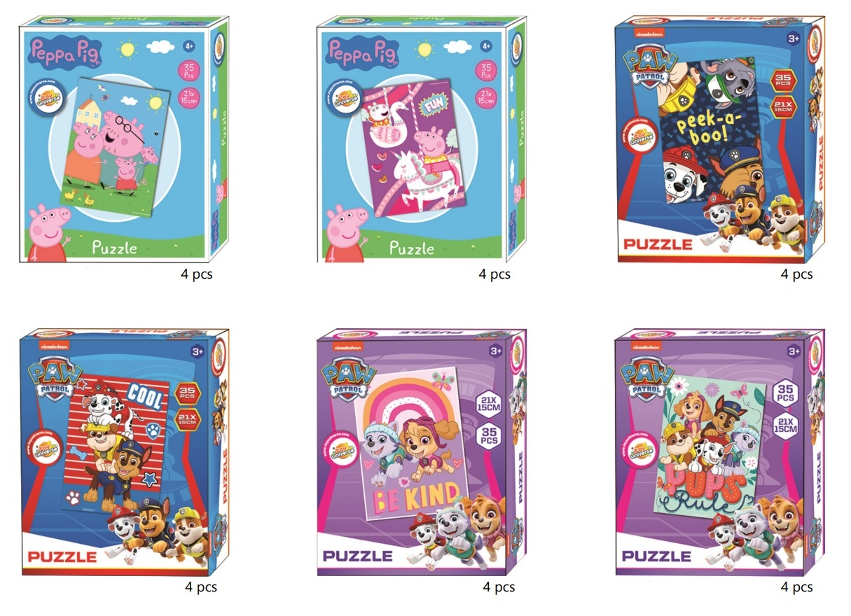 Puzzle 35 dílků 21x15 cm 6 druhů (Paw Patrol, Peppa Pig). Nelze vybrat druh, dodáváme dle skladové dostupnosti. číst celé