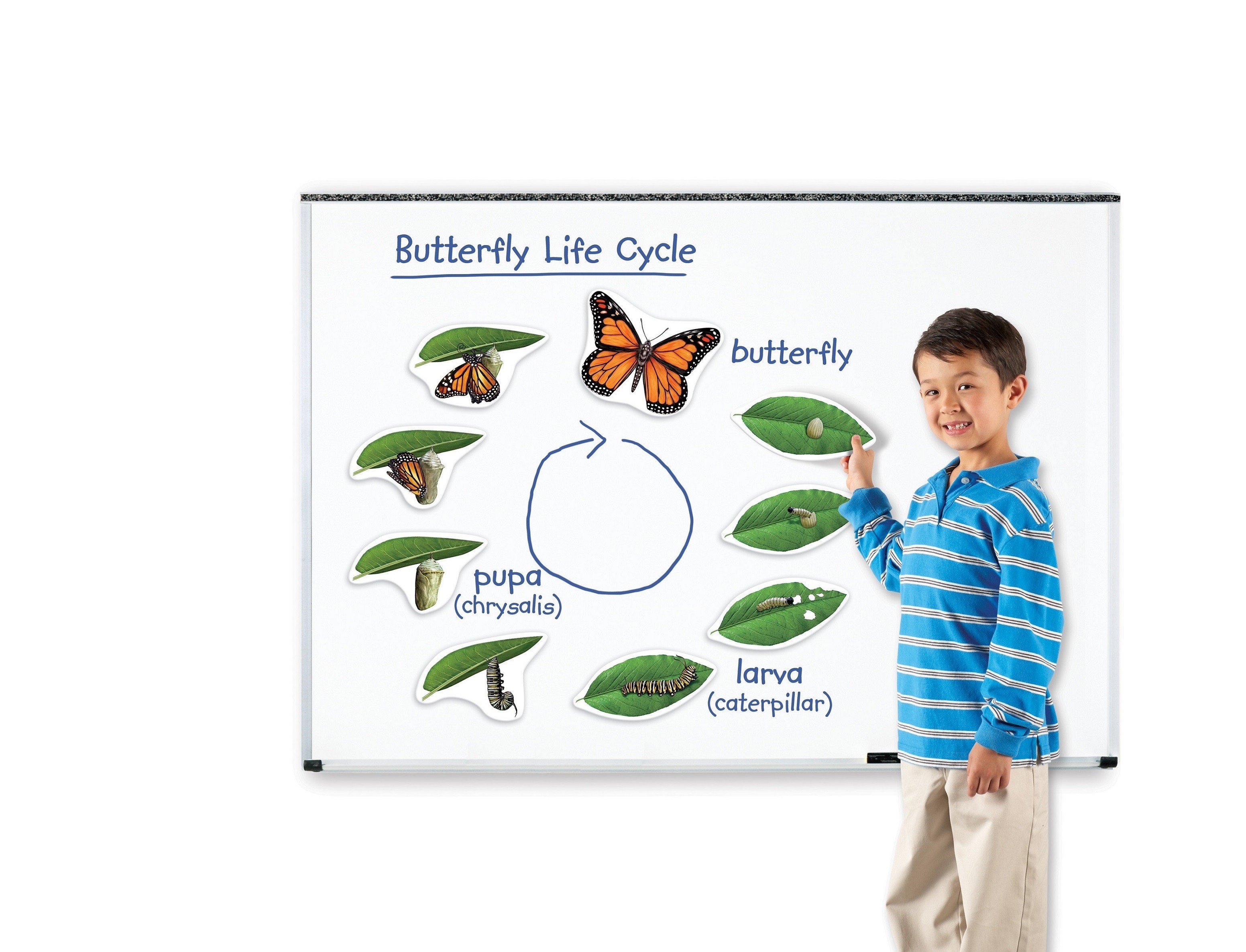 Oživte bílou tabuli životním cyklem motýla! Všechny studenty zaujme realistické zpracování vývoje motýla z housenky. Každý dílek lze popisovat - je omyvatelný. Největší kusy měří zhruba 20 cm x 20 cm. Vhodné pro děti od 5 do 9 let.