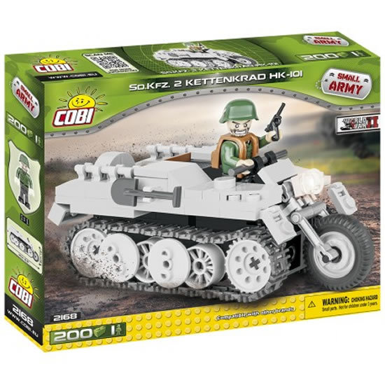 NSU HK 101, vojenské označení u Wehrmachtu Sd.Kfz. 2 bylo lehké polopásové vozidlo používané jednotkami Wehrmachtu v letech 1940 až 1945. Mohlo vézt pouze dva muže, ale vyznačovalo se vysokou rychlostí a průchodností terénem. Původně bylo vyvinuto pro výsadkové jednotky, postupně se však rozšířilo do všech složek armády jako průzkumné vozidlo. Balení obsahuje 200 kostek a 1 figurku.