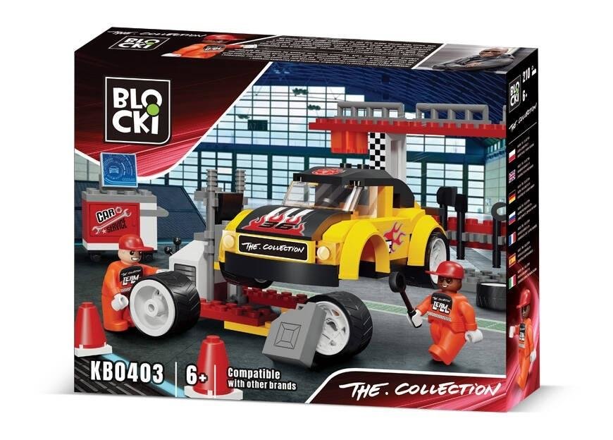 Zestaw BLOCKI The Collection - Racing Car Service - Warsztat KB0403 zawiera 195 elementów, które łączą się w model sportowego bolidu oraz warsztat samochodowy z mnóstwem akcesoriów i narzędzi do naprawy aut. W zestawie znajdują się też dwie mini figurki mechaników.