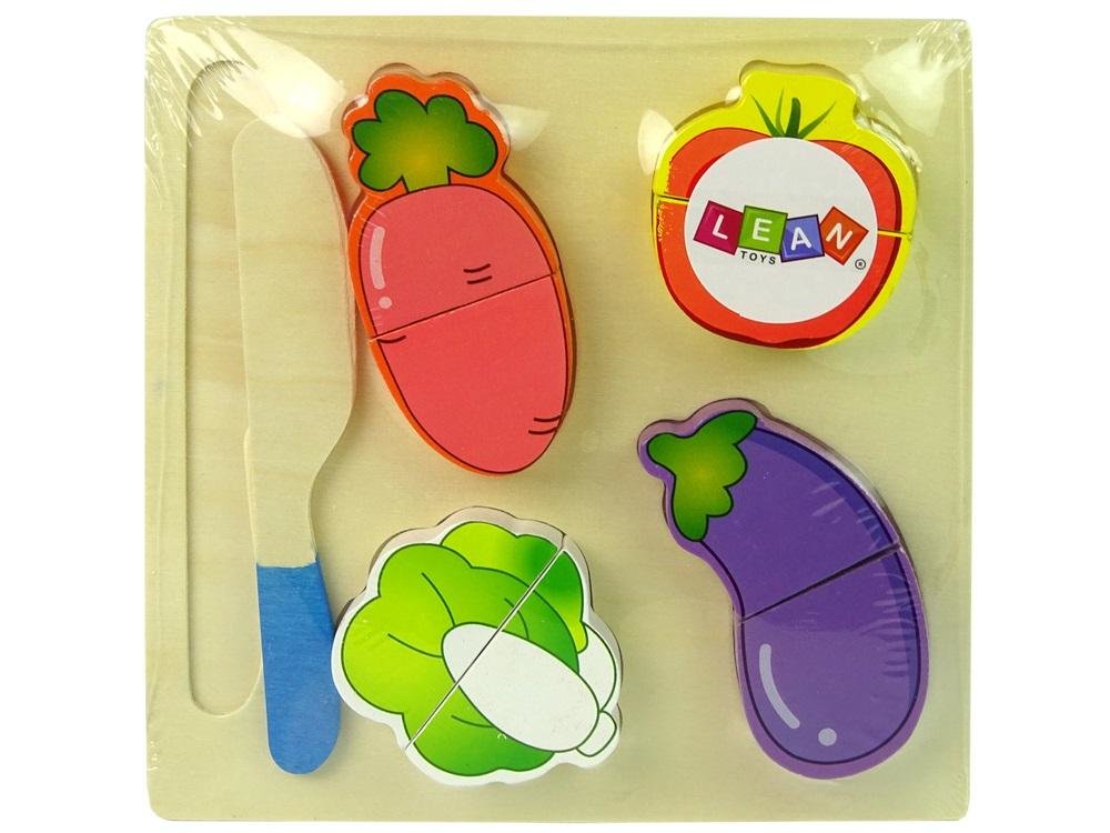 Warzywa przyczepione są do siebie rzepami, dlatego łatwo można je pokroić, a potem złączyć je razem. Dopasowywanie odpowiednich połówek zwiększy umiejętności logicznego myślenia. Aby dziecko mogło przygotować warzywa, deseczka do krojenia pozwoli przekroić je na połówki, dołączonym do zestawu nożykiem. Wgłębienia w deseczce nauczą dziecko dopasowywać odpowiednio kształty oraz rozwiną wyobraźnię przestrzenną.