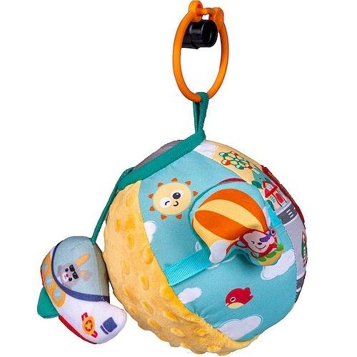 Závěsný aktivity míček, který dětem poskytne mnoho podnětů a zábavy. Díky zvukům, tvarům a různým pohyblivým částem se děti skvěle zabaví. Snadno se díky kroužku upevní ke kočárku, na sedačku či k postýlce.