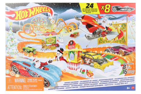 Rozjeďte to s tímto svátečním adventním kalendářem od Hot Wheels®! Za každým z 24 okýnek se skrývá prázdninové překvapení pro nadšence do aut - vozidlo nebo doplněk, který podporuje kreativní hru. Sada obsahuje osm aut Hot Wheels® v měřítku 1:64 a 16 doplňků, které inspirují k zimním dobrodružstvím. Samotný obal je součástí zábavy s připojenou podložkou na hraní. Vozidla a příslušenství nemusí fungovat se všemi sadami Hot Wheels®. Barvy a provedení se mohou lišit. Pro děti od 3 let.