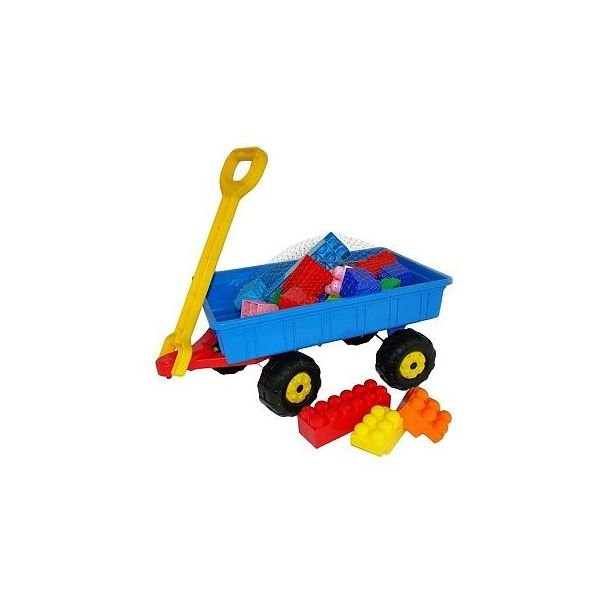 Sada na písek č. 381: Vozík Chata + Stavebnice Jumbo- /+1 Baleno v síťce, rozměry: 605 x 297 x 265mm