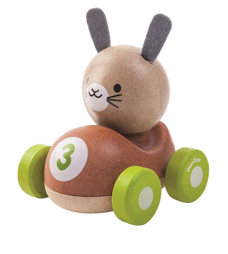 Užijte si skvělou zábavu s tímto králičím závodníkem. Díky jemně utvořeným křivkám může dítě auto snadno uchopit, jezdit s ním a trénovat tak jemnou motoriku. Rozměry: 9,1 cm x 8,8 cm x 11,6 cm. Vhodné pro děti od 12 měsíců.