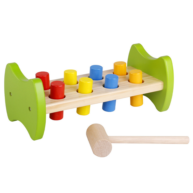 Je to klasická zatloukačka, která už po generace baví děti díky své jednoduchosti a příjemnému přírodnímu materiálu. Dřevěné provedení je příjemné na dotek a bezpečné pro malé ručičky.