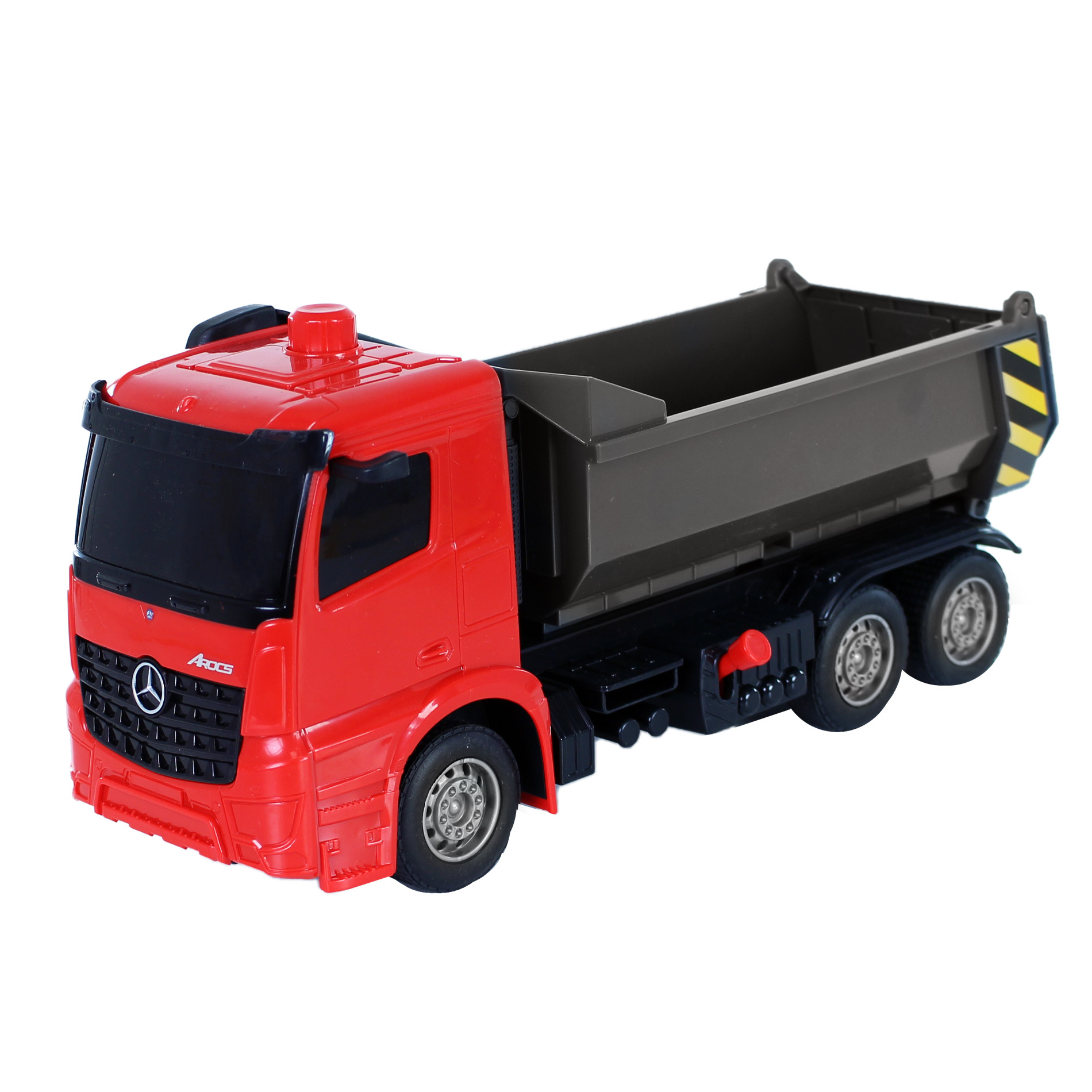Převést náklad už pro tebe nebude žádný problém! S tímto sklápěcím nákladním autem Mercedes-Benz to bude hračka. Auto jezdí na setrvačník. Má jedinečnou funkci vzduchového čerpadla pro zdvih korby. Zvednutí korby se provede jednoduchým mačkáním tlačítka na střeše kabiny, páčkou na boku se korba spustí dolů. Délka auta je 30 cm.