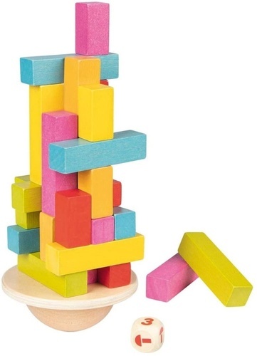 Tato barevná dřevěná věž ve tvaru domečku představuje skvělý způsob, jak strávit společný čas s blízkými. Hra je jednoduchá na pochopení a zároveň vzrušující, protože každý tah může rozhodnout o vítězi. Začíná položením půlkruhové základny na stůl, poté hráči střídavě přidávají dřevěné bloky podle hodu kostkou s motivy bodů a speciálního symbolu polokoule. Cílem je udržet rovnováhu věže a být posledním, kdo přidá blok, aniž by věž spadla.