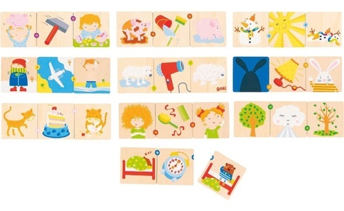 Didaktickou hru značky Goki tvoří celkem 10 trojic obrázků. Jedná se o krásnou, dřevěnou hru, v níž jde především o stanovení příčiny a následků. Co se stane se sněhulákem, když ho necháte na slunci příliš dlouho? Roztaje. A co se stane, když nám ráno nemilosrdně zazvoní budík? Vzbudí nás a hurá do školky a školy! Poznávejte souvislosti a seřaďte správně všechny obrázky. O správnosti vás přesvědčí barevné tečky na okraji karet. Ideální aktivita na rozvoj komunikačních schopností, logického uvažování a koncentrace. Tato vzdělávací hra nabízí více možností herních aktivit i pro více hráčů. Hračky Goki odpovídají evropské normě EN 71, výrobce klade velký důraz na jejich bezpečnost. Rozměry dřevěné kartičky: 5 cm x 5 cm Vhodné pro děti od 5 let.