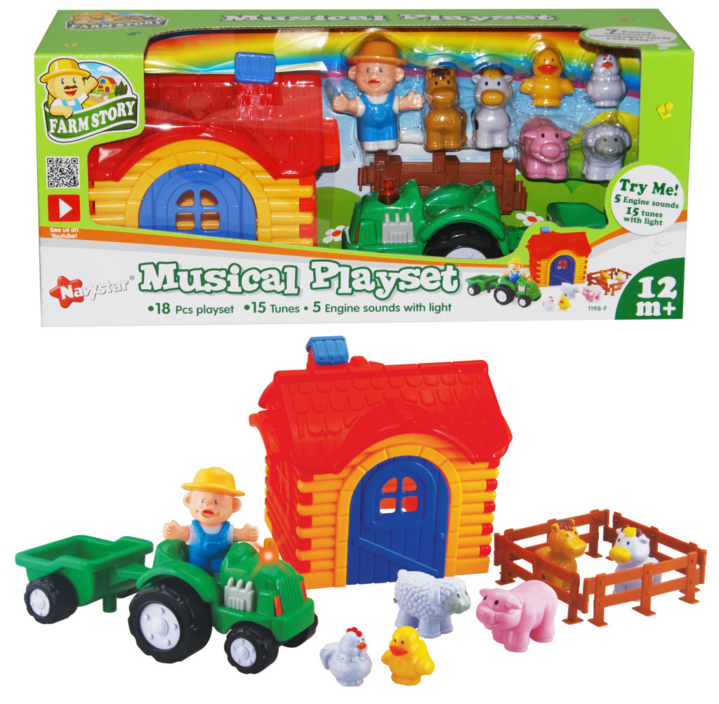 Hrací farmářský set s traktůrkem, domečkem a domácími zvířátky. Celý set nabízí různé melodie a traktůrek s funkčním majáčkem a zvukem. Vyrobeno z odolného a bezpečného plastu. Určenou pro nejmenší děti. číst celé