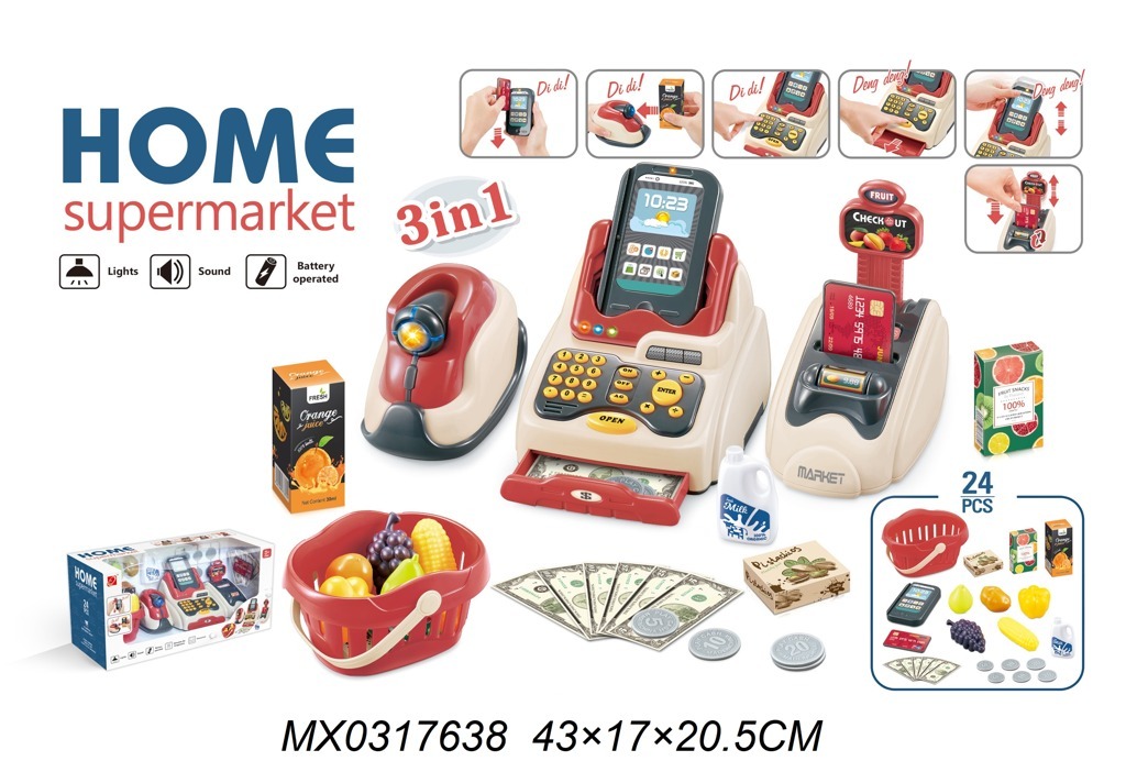 Tento nakupovací set je skvělý pro malé podnikatele! Součástí sady je pokladna, čtečka, platební terminál, nákupní košík, peníze a spousta zboží, které můžete „nakoupit“. Sada svítí a vydává zvuky, čímž vytváří realistický zážitek z nakupování. Pro provoz jsou potřebné 4× AA baterie a 2× AG13 (které nejsou součástí balení). Tento zábavný a interaktivní set je vhodný pro děti od 3 let a pomáhá rozvíjet jejich motorické dovednosti, představivost a sociální interakce. Skvělý způsob, jak si užít hodiny kreativní hry!