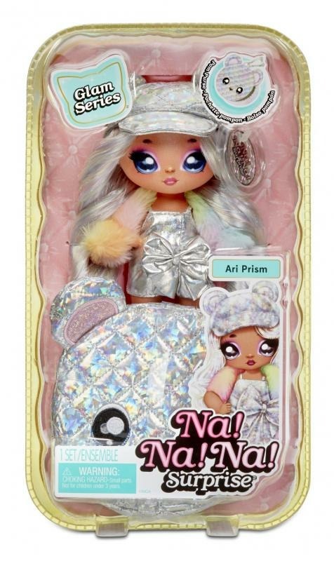 "Na! Na! Na! Surprise je úžasná měkoučká fashion panenka ukrytá v zářivém zvířátku, které si můžeš připnout na batoh nebo na kabelku. Zvířátko je nyní vyrobené ze zářivé metalické látky. Panenka má krásné vybarvené oči a dlouhé řasy. Panenku tentokrát najdeš v průhledném balení, tak přesně víš, o jakou se jedná. Můžeš hned vidět úžasné detaily jejího outfitu, ale i barvu a tvar zvířátka. Na čepičce panenky najdeš visačku ve tvaru kolečka, ve kterém se dočteš, jak se panenka jmenuje, kdy se narodila a charakteristiku její osobnosti.