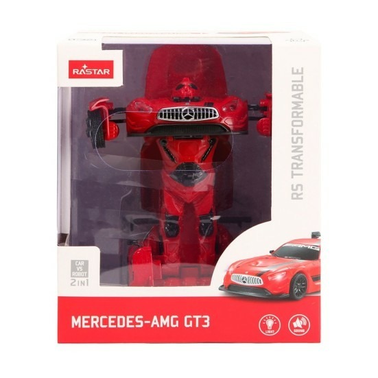 Přetransformuj auto Mercedes velikosti 1:32 v robota. Ve třechprovedeních - červené, černé a bílé. Funkce - svítí.