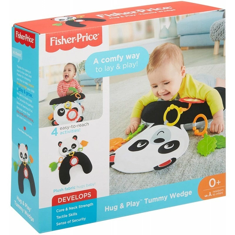 Fisher Price hrací podložka pod bříško Panda. Přátelský kamarád panda „obejme“ miminko když si hraje na bříšku. Podložka obsahuje zrcátko, kousát atp. Lze prát v pračce (s odstraněnými hračkami).