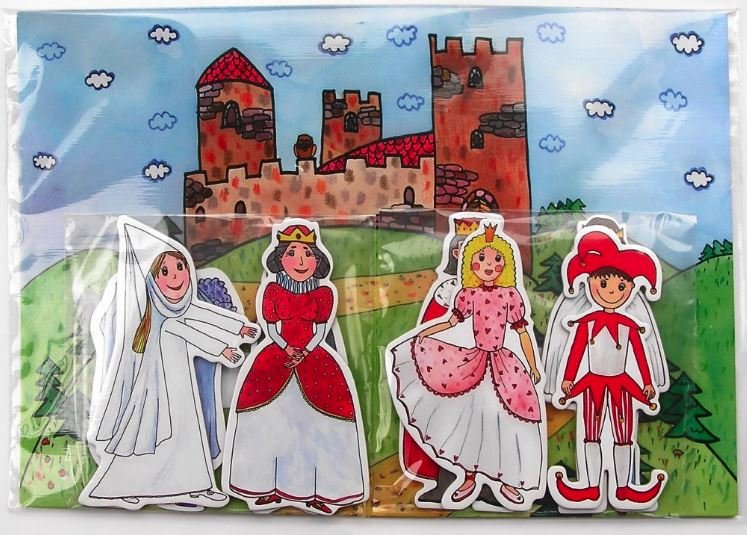 Krásná princezna a udatný princ, moudrý pan král a laskavá královna, veselý Kašpárek a další loutky, ke kterým se perfektně hodí scéna hradu či zámku. Loutky jsou oboustranné, pevné, kvalitní, příjemné na dotek a vejdou se do dětské ruky.