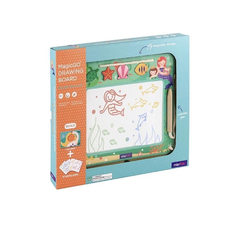 Krásná magneticka kreslící tabulka pro kreativní hry. Čmárejte, pište nebo kreslete pomocí připojeného pera a čtyř tematických magnetických razítek vytvořte svá mistrovská díla. Funkce: Perfektní pro hraní na cestách, kompaktní a lehká tabulka. Kouzelné vyčištění tabulky během několika sekund. Použijte razítko jako gumu na zadní straně k otírání čmáranic v určité oblasti. Pevný karton se zaoblenými hranami a měkkými rohy 1 velká šablona a 20 kreseb krok za krokem pro rozvoj dovedností kreslení. Obsahuje 4 magnetická razítka, dřevěnou tužku připevněnou bavlněným provázkem. Rozměr: 34,2 * 4 * 29,8 cm. Věk: 3+