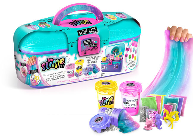Vyrobte si svůj vlastní sliz. Nasypejte do kelímku prášek, přidejte glitry a figurku. Nalijte vodu až po rysku, zavřete kelímek a směs pořádně protřepejte. Pak kelímek otevřete a počkejte pět minut. Sliz je hotový. Kombinujte barvy, přidejte třpytky a užijte si tu pravou zábavu se slizem.